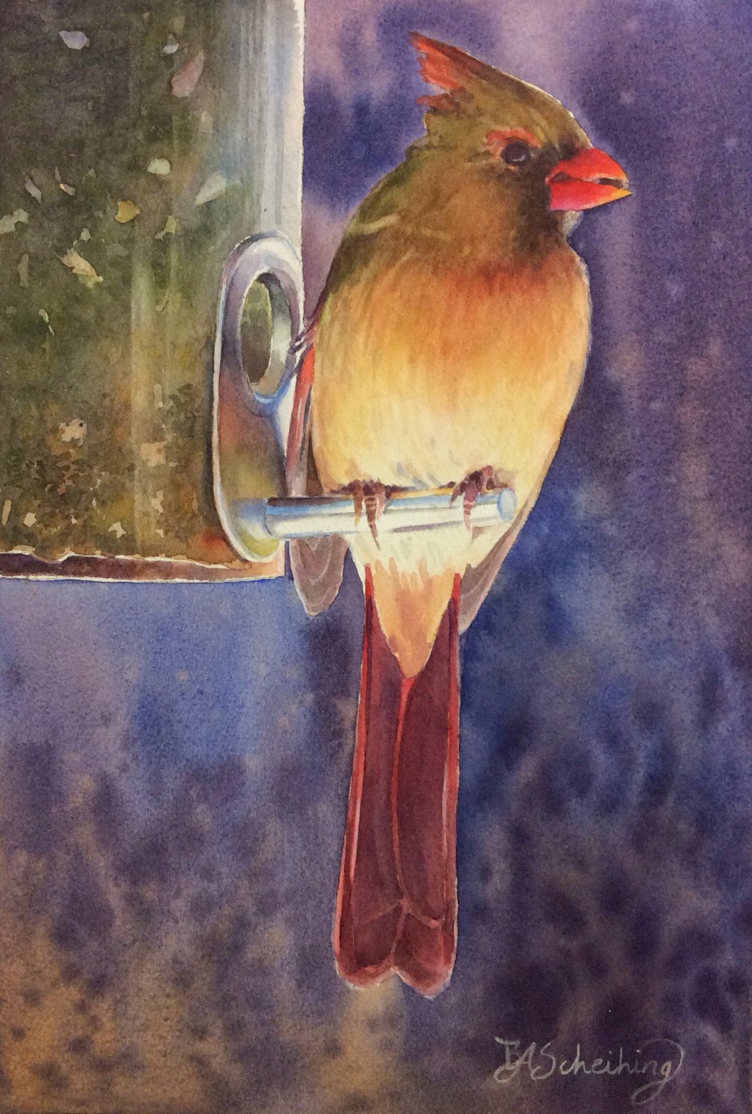 cobalt teal to it. It is VERY light.....don't be heavy handed with it.....remember we are downplaying this area. After this dries, I made a little heavy mix of the initial violet I used to paint the basket and put in some minute details.....adding a little more cobalt to darken towards the bottom. You might have to add a little yellow to tone down that violet shadow if you don't already have it in your mix.....don't make that shadowed violet too violety....(my word).