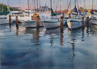 Right now I am working on a painting of boats...it's not quite finished yet, but I am hoping to add it to the library gallery show. Gotta have SOME new things!!
